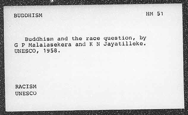 BUDDHISM Buddhism and the race question, by G P Malalasekera and K N Jayatilleke. UNESCO, 1958. RACISM UNESCO