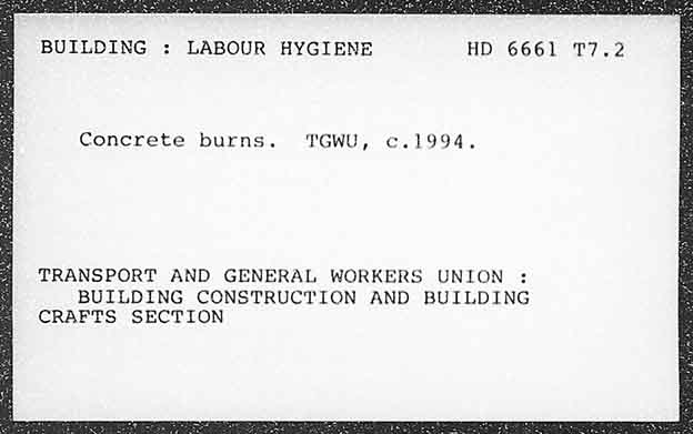 BUILDING : LABOUR HYGIENE HD 6661 T7.2 Concrete burns. TGWU, c.1994, TRANSPORT AND GENERAL WORKERS UNION BUILDING CONSTRUCTION AND BUILDING CRAFTS SECTION
