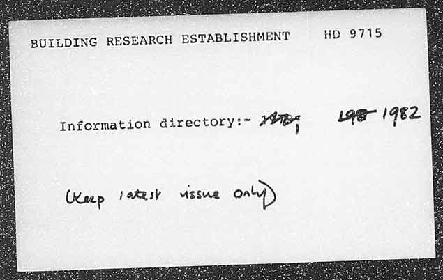 BUILDING RESEARCH ESTABLISHMENT HD 9715 Information directory:~ We Lae 1962 = (keep (akesk 6 Mssue only)
