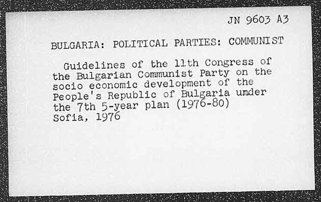 JN 9603 AZ BULGARIA: POLITICAL PARTIES: COMMUNIST Guidelines of the llth Congress of the Bulgarian Communist Party on the socio economic development of the People's Republic of Bulgaria umder the 7th 5-year plan (1976-80) Sofia, 1976