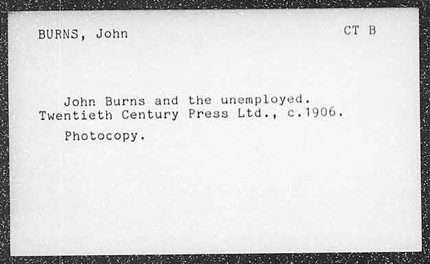BURNS, John John Burns and the unemployed, Twentieth Century Press Ltd., c.1906. Photocopy.