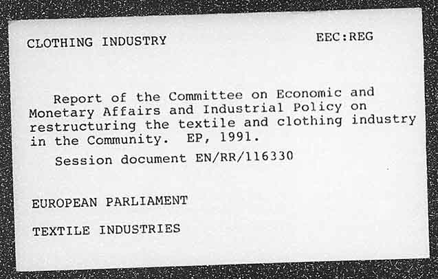CLOTHING INDUSTRY Report of the Committee on Economic and Monetary Affairs and Industrial Policy on restructuring the textile and clothing industry in the Community. EP, 1991. Session document EN/RR/116330 EUROPEAN PARLIAMENT TEXTILE INDUSTRIES
