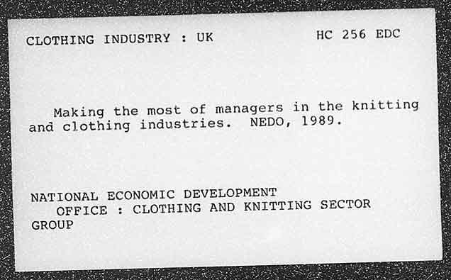 CLOTHING INDUSTRY : UK HC 256 EDC Making the most of managers in the knitting and clothing industries. NEDO, 1989. NATIONAL ECONOMIC DEVELOPMENT OFFICE : CLOTHING AND KNITTING SECTOR GROUP
