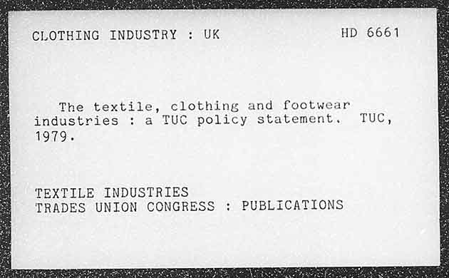 London Metropolitan University – TUC Library Collections Index card Site
