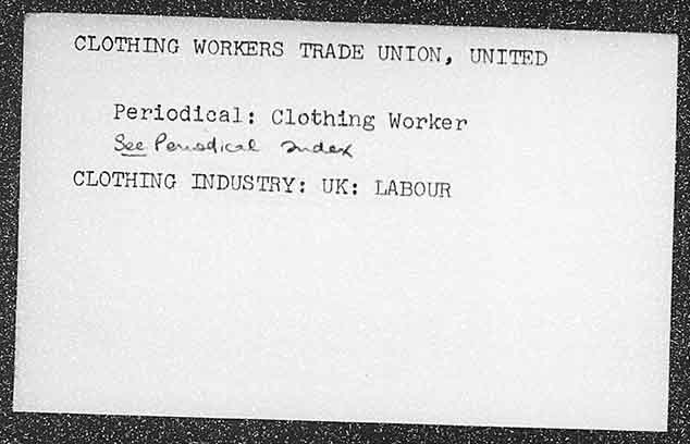 CLOTHING WORKERS TRADE UNTON, UNITED Periodical: Clothing Worker See Pon. mhica? idan CLOTHING INDUSTRY: UK: LABOUR