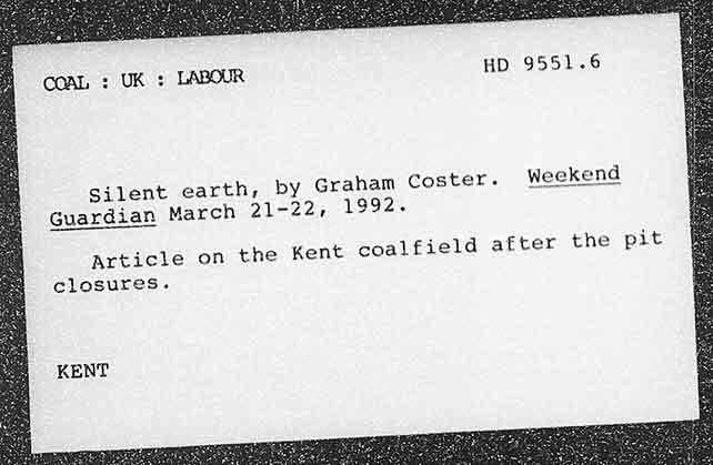 HD 9551.6 by Graham Coster. Weekend Silent earth; 1992. Guardian March 21-22, pit n the Kent coalfield after the Article o closures.