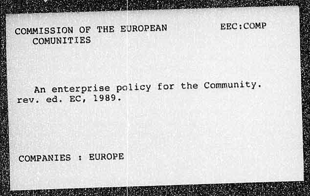 COMMISSION OF THE EUROPEAN BEC :COMP COMUNITIES An enterprise policy for the Community. rev. ed. EC, 1989. COMPANIES ; EUROPE