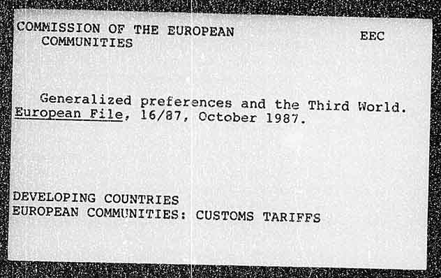 sCOMMISSION OF THE EUROPEAN ‘ COMMUNITIES Generalized preferences and the Third Worla. European File, 16/87, Cctaber 1987. DEVELOPING COUNTRIES EUROPEAN COMMUNITIES; CUSTOMS TARIFFS
