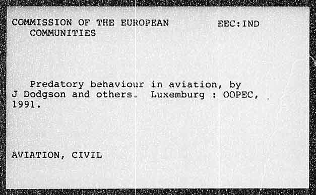COMMISSION OF THE EUROPEAN BEC: IND COMMUNITIES Predatory behaviour in aviation, by J Dodgson and others, Luxemburg : OOPEC, POO). AVIATION, CIVIL