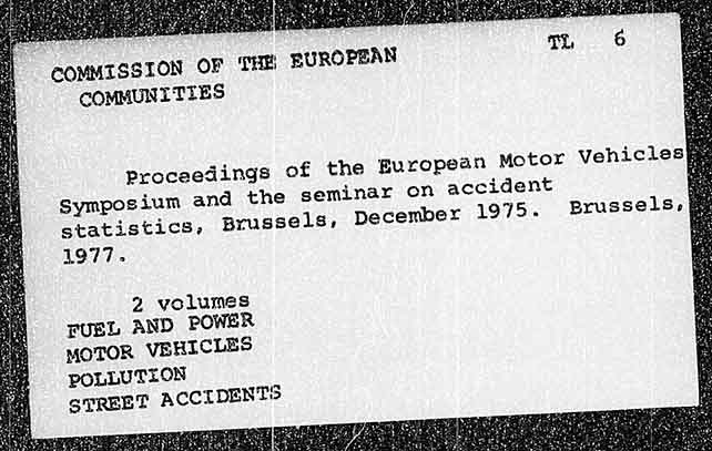 COMMISSION OF THE EUROPEAN COMMUNITIES Proceedings of the Buropean Motor vehicles} Symposium and the seminar on accident statistics, Brussels, December 1975. Brussels, 1977 » 2 volumes FUEL AND POWER MOTOR VEHICLES POLLUTION STREET ACCIDENTS