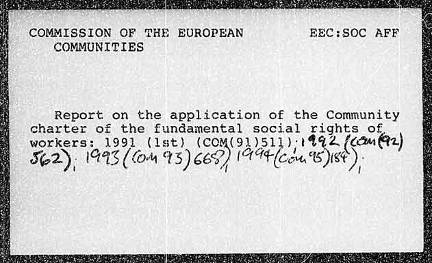 COMMISSION OF THE EUROPEAN BEC:SOC AFF COMMUNITIES Report on the application of the Community charter of the fundamental social rights of workers: Es (1st) eo) ae 1442. (cam) Se2), 1473 (on 15) C697) (A714 (cou, Bist)