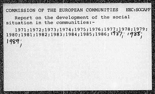 COMMISSION OF THE EUROPEAN COMMUNITIES EBC:SOCALFG Report on the development of the social situation in the communities:- 1971319723197331974;1975;197631977;1978;1979; 1980; 1981;1982;1983;1984;1985;1986; (197° (958 1964