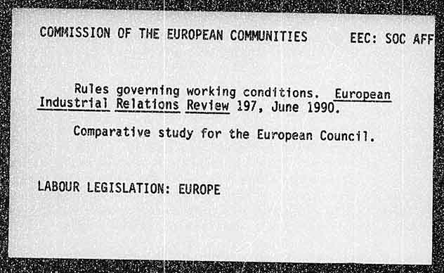 COMMISSION OF THE EUROPEAN COMMUNITIES EEC: SOC AFF Rules governing working conditions. European Industrial Relations Review 197, June 1990. Comparative study for the European Council. LABOUR LEGISLATION: EUROPE