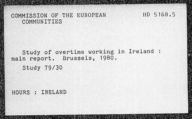 COMMISSION OF THE EUROPEAN HD 5168.5 COMMUNITIES Study of overtime working in Ireland main report. Brussels, 1980. Study 79/30 HOURS : IRELAND
