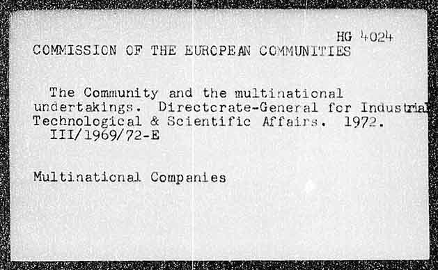 HG 4024, COMMISSION OF THE EURCPEAN COMMUNI''LTES ry The Community and the multinational undertakings. Directcrate~General for Industri Technological & Scientific Affairs. 1972, III/1969/72-E Multinational Companies