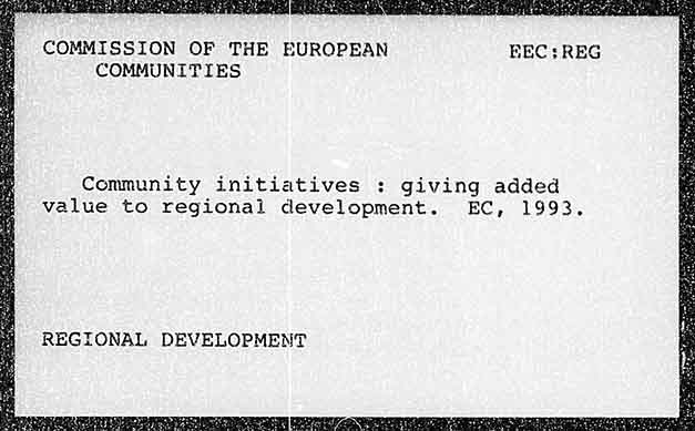 COMMISSION OF THE EUROPEAN EEC;:REG COMMUNITIES Community initiatives : giving added value to regional development. EC, 1993. REGIONAL DEVELOPMENT