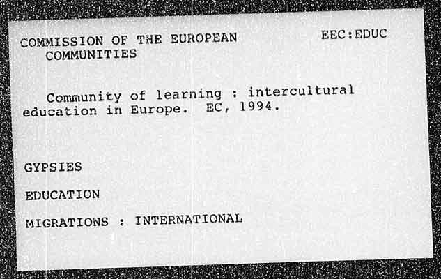 COMMISSION OF THE EUROPEAN EEC: EDUC COMMUNITIES Community of learning : intercultural education in Europe. EC, 1994. GYPSIES EDUCATION MIGRATIONS : INTERNATIONAL