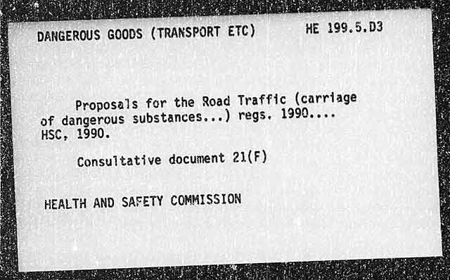 oi Pele DANGEROUS GOODS (TRANSPOR Proposals for the Road Traffic (carriage of dangerous substances...) regs. 1990... HSC, 1990. Consuitative document 21(F) HEALTH AND SAFETY COMMISSION HE 199.5.D3