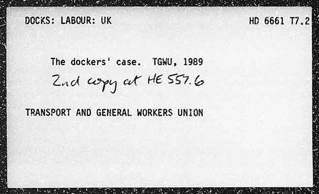 SEA noes DOCKS: LABOUR: UK HD 6661 17.28 The dockers' case. TGWU, 1989 Zadk copy et HE SS7.G TRANSPORT AND GENERAL WORKERS UNZON