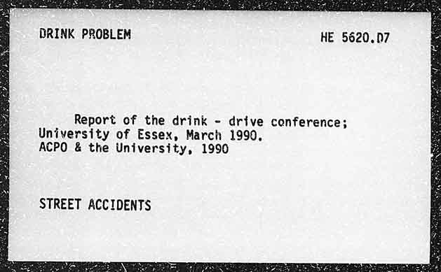 HE 5620.07 Report of the drink - drive conference; University of Essex, March 1990, ACPO & the University, 1990 STREET ACCIDENTS