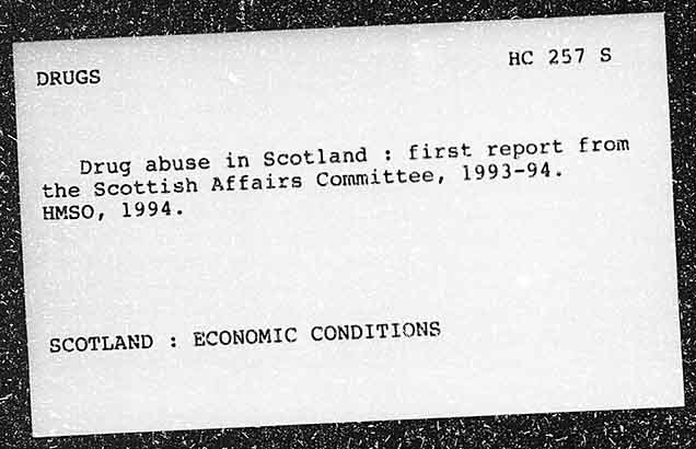 Drug abuse in Scotland : first report from the Scottish A HMSO, 1994. ffairs Committee, 1993-94. SCOTLAND : ECONOMIC CONDITIONS