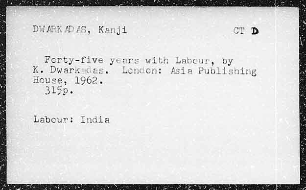 with Labeur, by K. Dwarkades ondon: Asia Publishing House, 1962. 31%p.