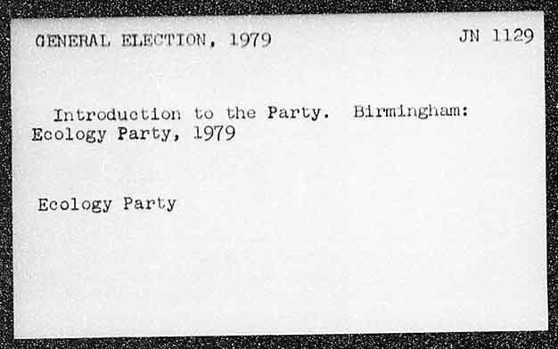 GENERAL ELNCTION, 1979 JN 1129 & {Introduction to the Party. Birmingham: Ecology Party, 1979 Ecology Party