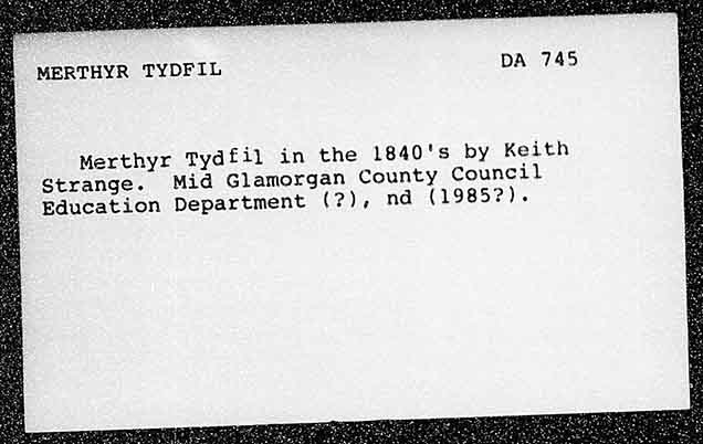 MERTHYR TYDFIL Merthyr Tydfil in the 1840's by Keith Strange. Mid Glamorgan County Council Education Department (?), nd (1985?).