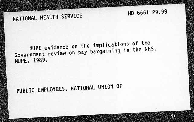 HD 6661 P9.99 NATIONAL HEALTH SERVICE plications of the NUPE evidence on the im gaining in the NHS. Government review on pay bar NUPE, 1989. PUBLIC EMPLOYEES, NATIONAL UNION OF