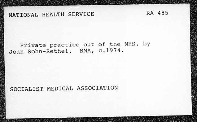 NATIONAL HEALTH SERVICE Private practice out of the NHs, by Joan Sohn-Rethel. SMA, c.1974. SOCIALIST MEDICAL ASSOCIATION
