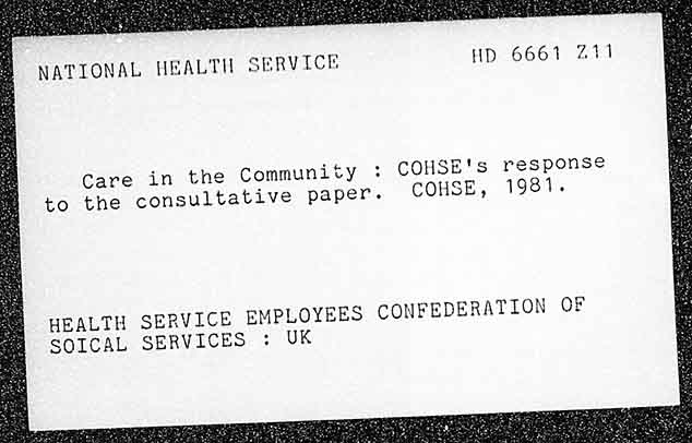 NATIONAL HBALTH SERVICE HD 6661 211 COHSE's response Care in the Community COHSE, 1981. to the consultative paper. VICE EMPLOYEES CONFEDERATION OF SOICAL SERVICES : UK HEALTH SER