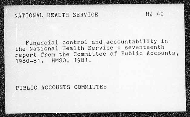 NATIONAL HEALTH SERVICE Financial control and accountability in the National Health Service : seventeenth report from the Committee of Public Accounts, 1980-81. HMSO, 1981. PUBLIC ACCOUNTS COMMITTEE
