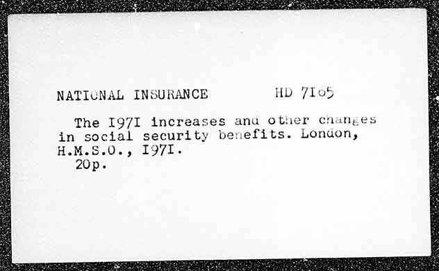 NATICNAL INSURANCE HD 7165 The I97I increases ana other changes in social security benefits. Lonuon, HeMaseOe, LO/L. 20p.