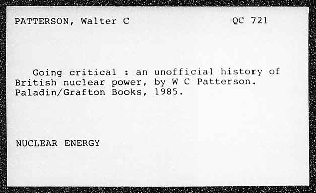 PATTERSON, Walter C Going critical : an unofficial history of British nuclear power, by W C Patterson. Paladin/Grafton Books, 1985. NUCLEAR ENERGY