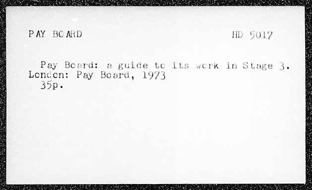 PAY BC ARD Pay Board: a guide tc its Lencon: Pay Board, 1973 3p.