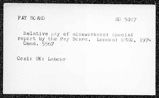 PAY BO AKD tl HOW Relative pay of minewcrkers: special epert by the Pay Beard. Londen: LMSC » L974, Cmnd. 5567 Coal: UK: Labour