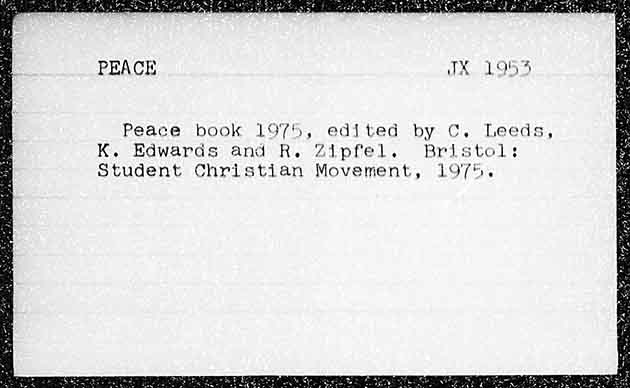 PEACE 195% Peace book 1975, edited by C. Leeds, K, Edwards and R. Zipfel, Bristol: Student Christian Movement, 1975.