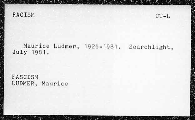 RACISM Maurice Ludmer, 1926-1981, Searchlight, July 1981. FASCISM LUDMER, Maurice
