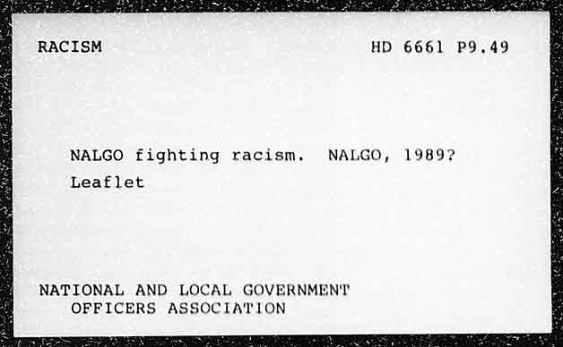 RACISM 6661 P9.49 NALGO fighting racism. NALGO, Leaflet NATIONAL AND LOCAL GOVERNMENT OFFICERS ASSOCIATION