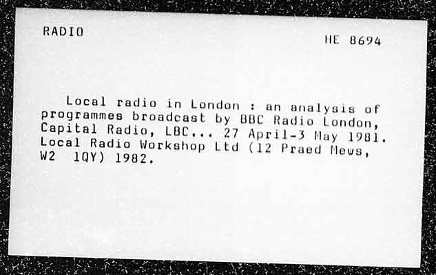 RADIO - 8694 Local radio in London ¢ an analysis of Programmes broadcast by BBC Radio London, Capital Rediea. ERC. 9% April-3 May 198], Local Radio Workshop Ltd (12 Ppaed News, W2 1QY) 1982,