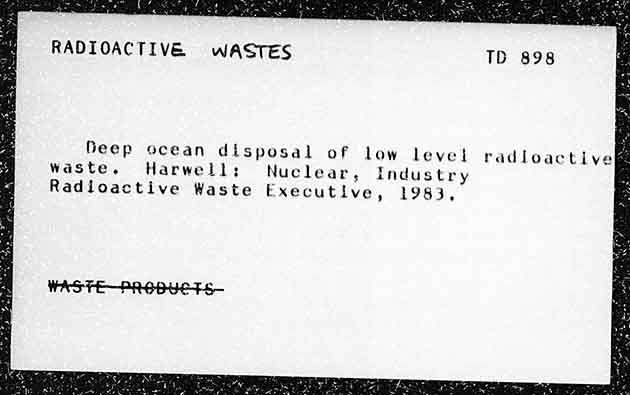 RADIOACTIVE WASTES Heep scean disposal of low level waste. Warweil: Nuclear, Industry Radioactive Waste Executive, 1983, radloactive