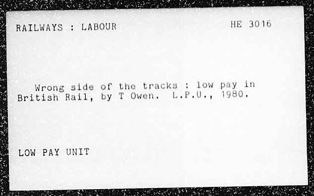 : LABOUR Wrong side of the tracks ; low pay in British Rail, by T Owen, L.P.U., 1980. LOW PAY UNIT