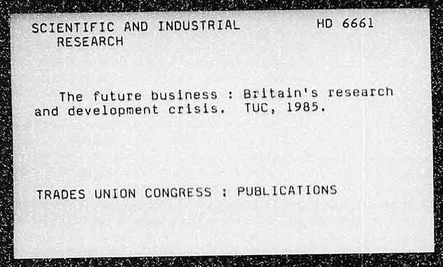 SCIENTIFIC AND INDUSTRIAL HD 666i RESEARCH The future business : Britain's research and development crisis. TUC, 1985. TRADES UNION CONGRESS : PUBLICATIONS
