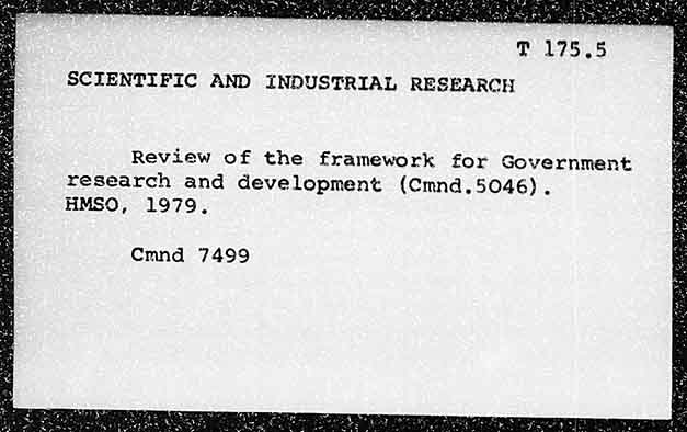 SCIENTIFIC AND INDUSTRIAL RESEARCH Review of the framework for Sovernment research and development (Cmnd.5046) . HMSO, 1979, Cmnd 7499