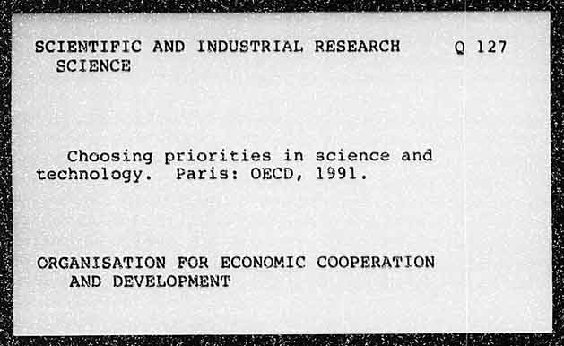 SCIENTIFIC AND INDUSTRIAL RESEARCH Q 127 SCIENCE Choosing priorities in science and technology. Paris: OECD, 1991. ORGANISATION FOR ECONOMIC COOPERATION AND DEVELOPMENT