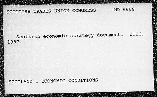 SCOTTISH TRADES UNION CONGRESS HD 6668 Scottish economic strategy document. 1987. SCOTLAND : ECONOMIC CONDITIONS
