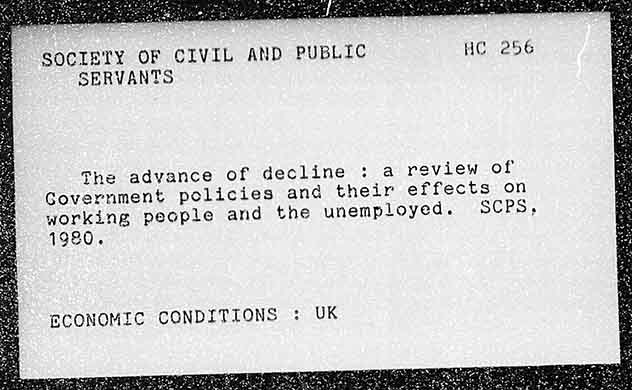 SOCIETY OF CIVIL AND PUBLIC HC SERVANTS The advance of decline : a review of Government policies ang their effects on working people and the unemployed. SCPS, 1980. ECONOMIC CONDITIONS : UK