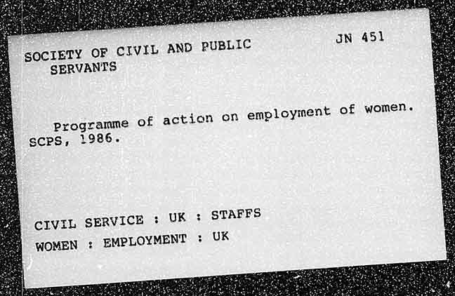 SOCIETY OF CIVIL AND PUBLIC SERVANTS n on employment of women. Programme of actio SCPS, 1986. : STAFFS : UK CIVIL SERVICE : UK WOMEN : EMPLOYMENT