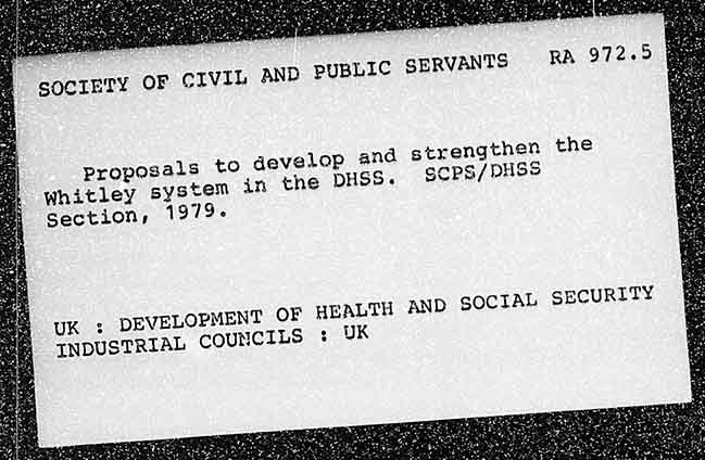 UBLIC SERVANTS RA 972.9 SOCIETY OF CIVIL AND P proposals to develop and strengthen the Whitley system in the DHSS. cPps/DHSs Sections 1979. OF HEALTH AND SOCIAL SECURITY UK 3: DEVELOPMENT : UK INDUSTRIAL COUNCILS