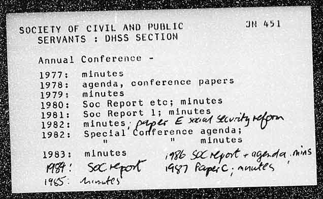 SOCIETY OF CIVIL AND PUBLIC SERVANTS : DHSS SECTION Annual Conference - 19773 minutes 1978: agenda, conference papers 1979: minutes 1980: Soc Report etc; minutes 1981: Soc Report 1; minutes 1982: minutes: (Lee, Exact Steveety hep 19823 Special’ ference agenda; Ne minutes 1963: minutes We LL repo + agenda min AF. Sax 1497 Reaper C- anu LU . Aniah § ¥ ao >